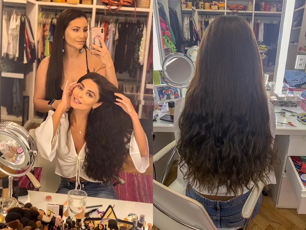 O procedimento foi realizado pela hairstylist Cintia Fortes, do Fortes Mega Hair Studio. Segundo a profissional, a aplicação do alongamento foi feita na residência da atriz, com a técnica Fortes Invisible, um método de extensão adesiva.